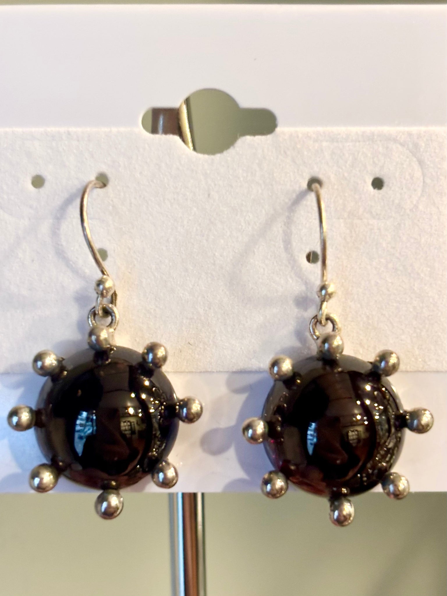Enhance your style with these sterling silver dark red garnet dangle earrings. The unique large natural garnet cabochon adds a touch of sophistication to any outfit. With hook backs, they are easy to wear and perfect for any occasion. Elevate your look with these stunning earrings.