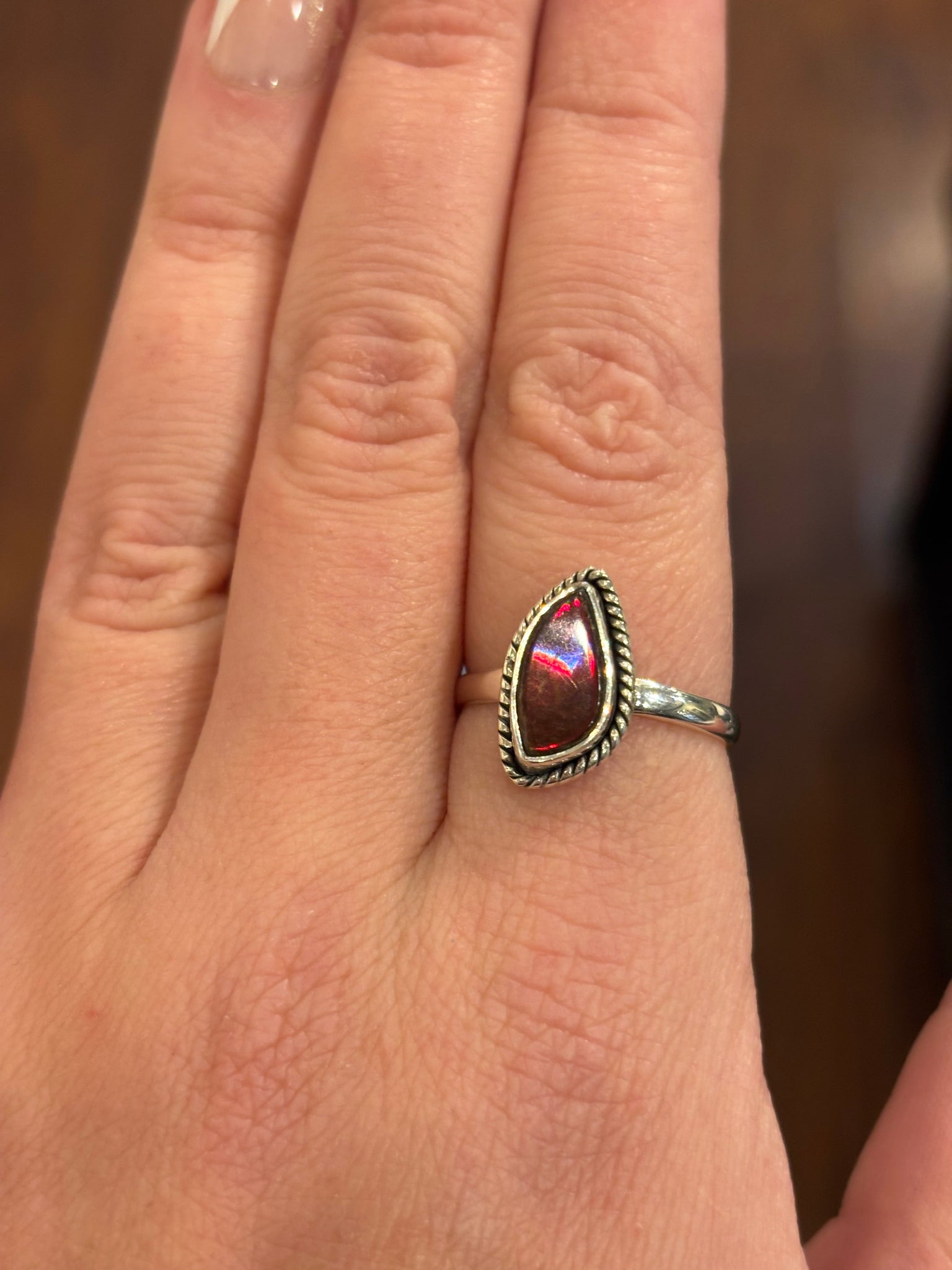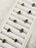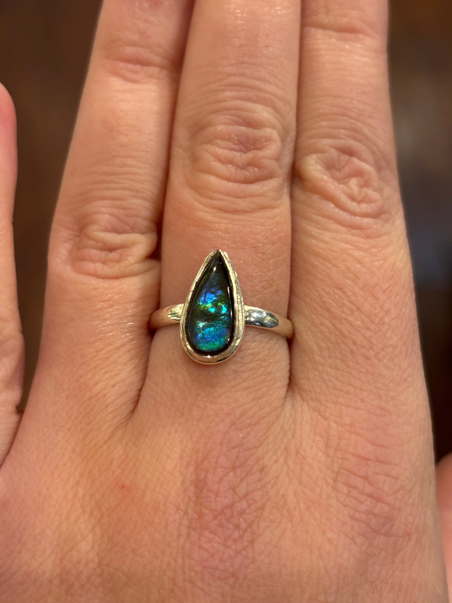 Our mini ammolite rings are expertly crafted in sterling silver, presenting a stunning display of vibrant colors and iridescent patterns. The rare ammolite stone provides natural beauty and healing properties, making these rings both a stylish and beneficial addition to any jewelry collection.