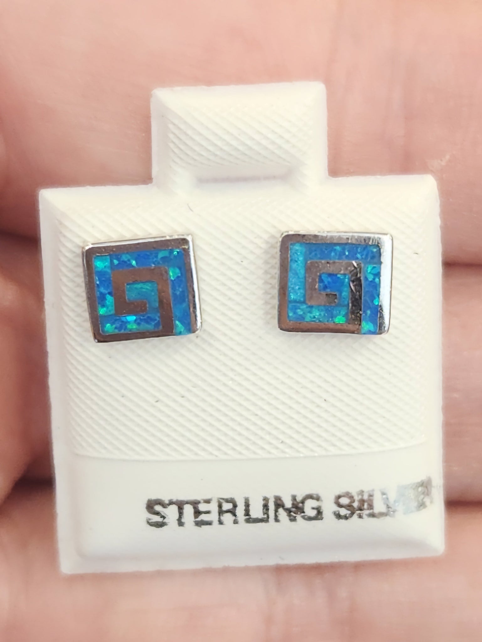 Sterling silvet square spiral kyocera opal earring studs