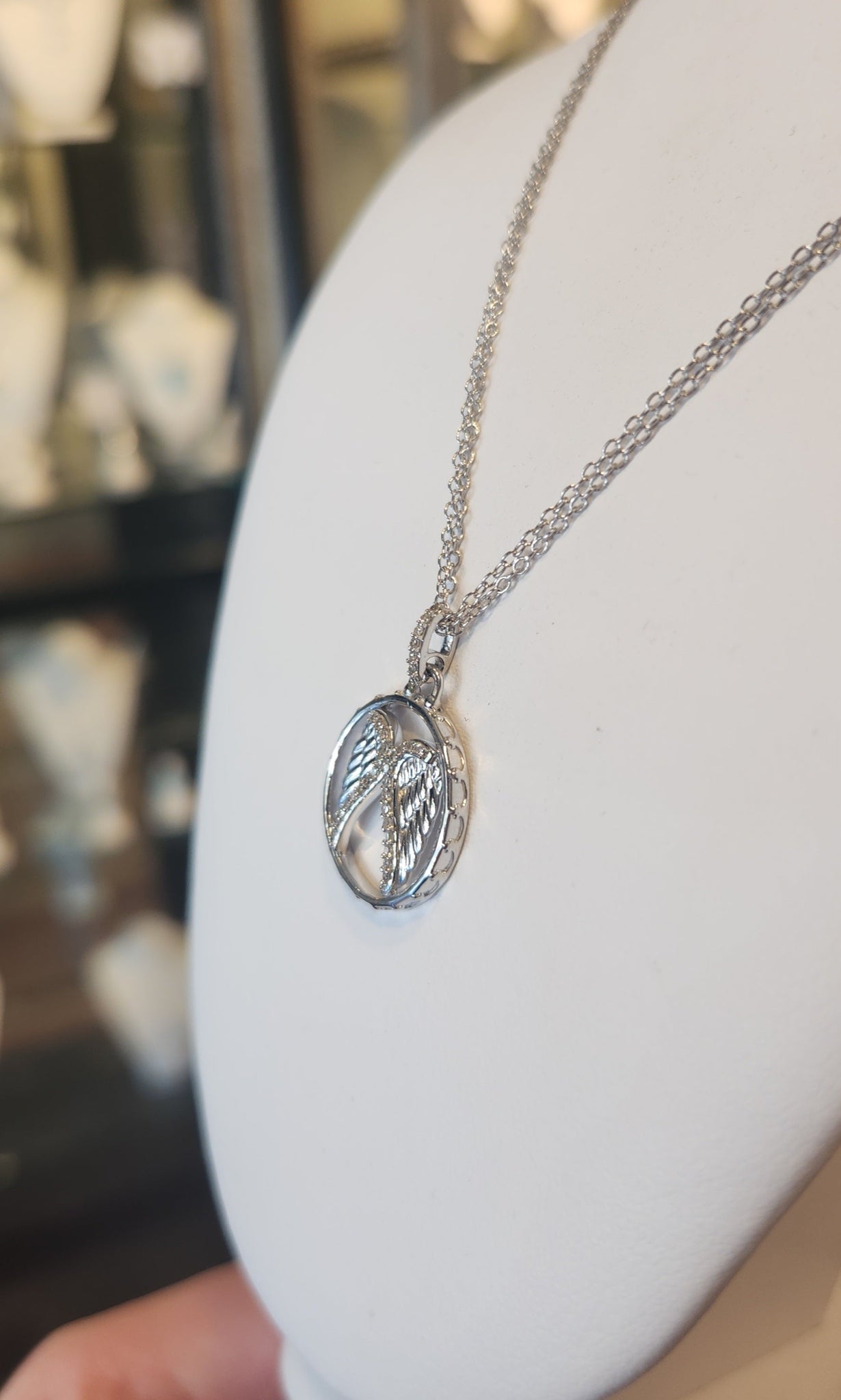 Elevate your style with our elegant sterling silver pendant featuring delicate angel wings and sparkling diamonds....