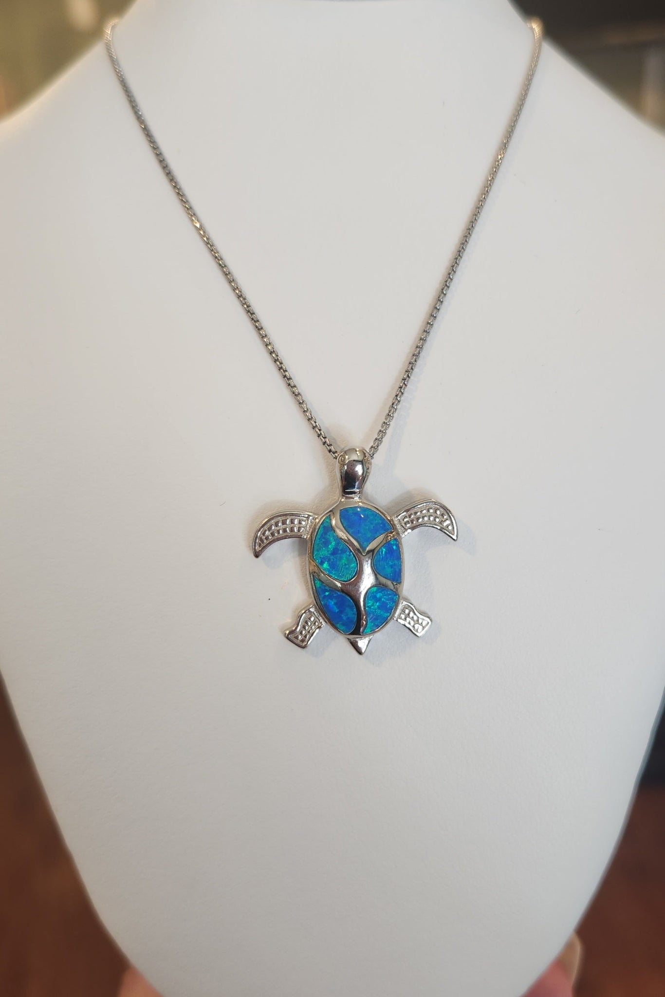 Shell-ebrate your style with this playful sea turtle pendant! Crafted from sterling silver and featuring a unique kyocera opal shell, this pendant will add a touch of whimsy to any outfit. Perfect for animal lovers and those who appreciate quirky fashion!