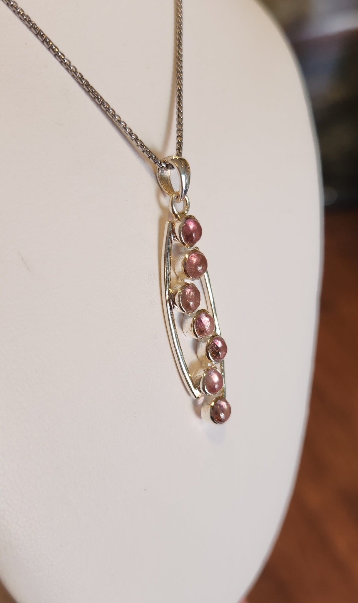 Stylish and trendy sterling silver pendant featuring several natural pink tourmaline. Chain included.ÃÂÃÂ