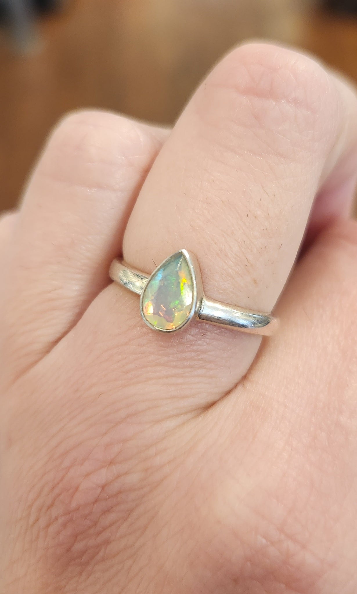 Sterling silver faceted pear-shaped Ethiopian opal ring