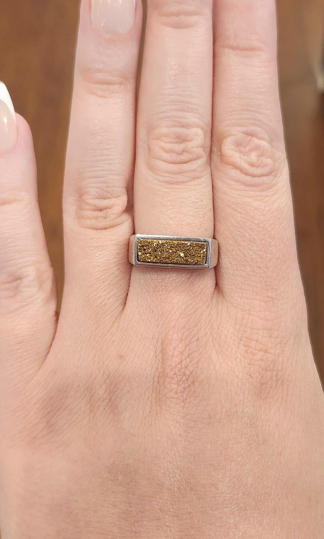 Sterling silver golden druzy ring
