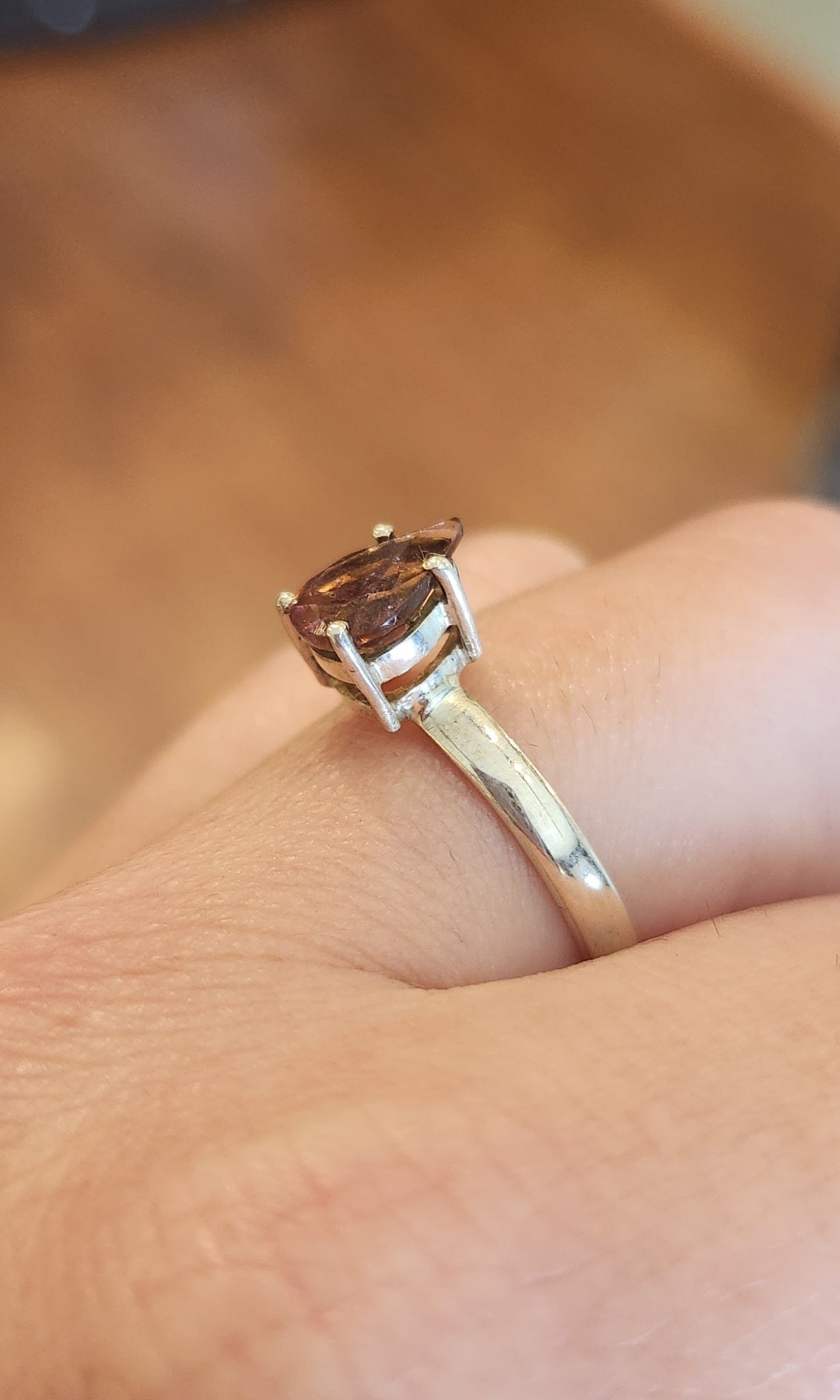 Sterling silver pear-shaped faceted pink tourmaline ring