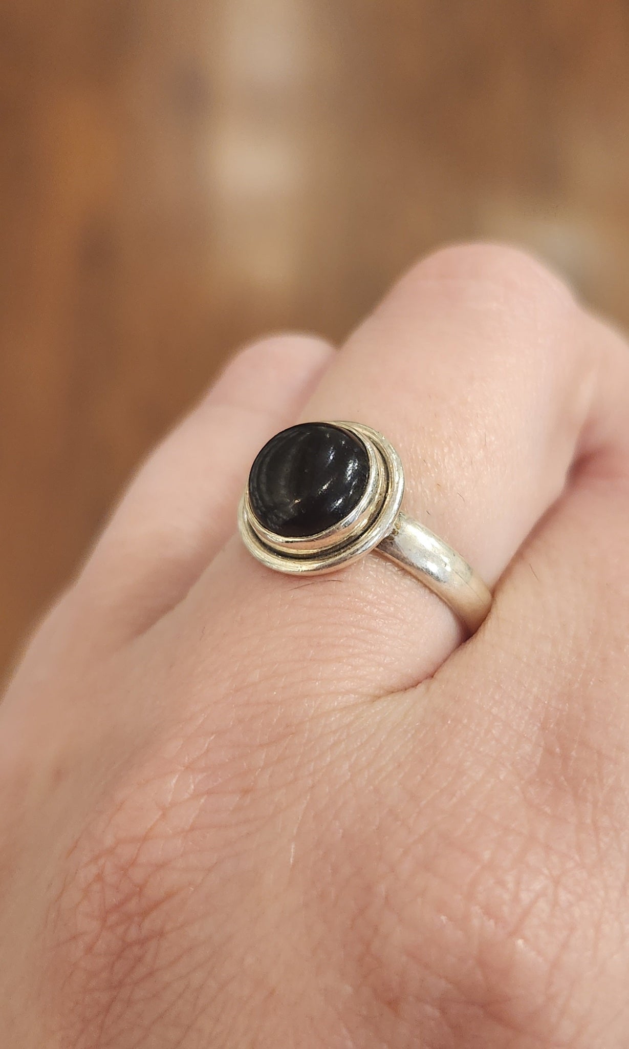 Cute and stylish sterling silver ring featuring a natural black onyx.