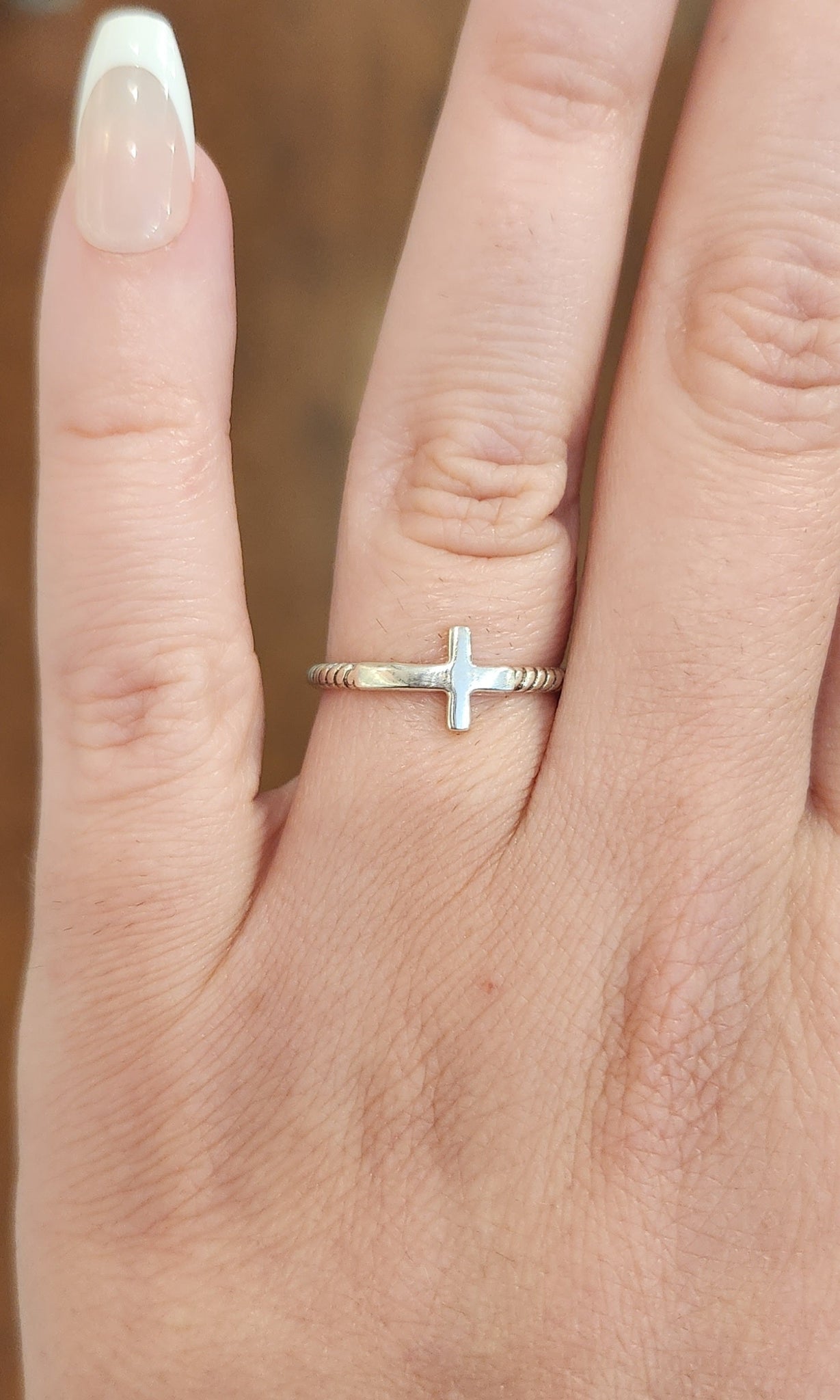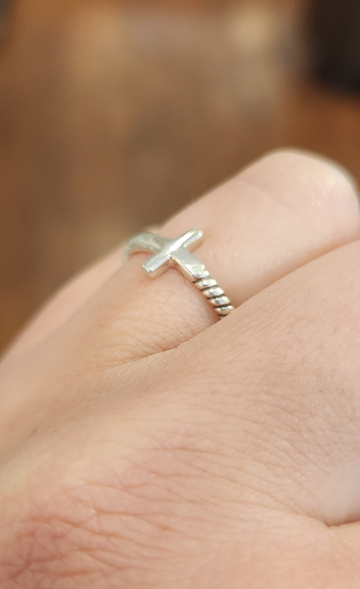 Super cute sterling silver ring featuring a sideways cross and twisted band.ÃÂÃÂ