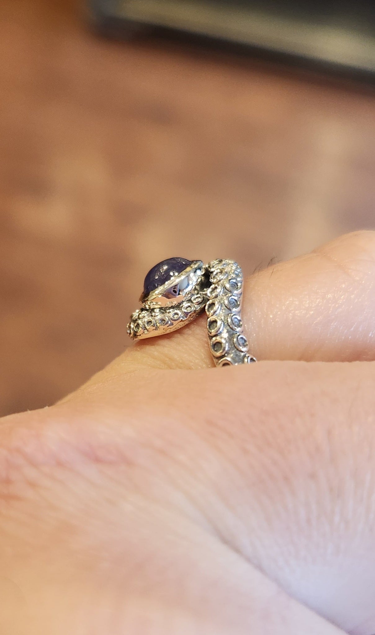 Sterling silver tentacle ring with tanzanite.