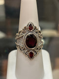 Sterling silver three stone garnet statement ring
