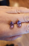 Beautiful 10k yellow gold pear-shaped amethyst stud earrings.